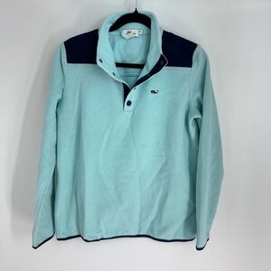 Vineyard Vines Preppy Classic Blue Quarter Long Sleeve Fleece Button Up Sweater