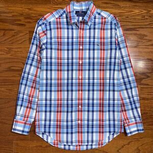 Vineyard Vines Preppy Slim Fit Blue Red Plaid Whale Button Up Shirt Size Small