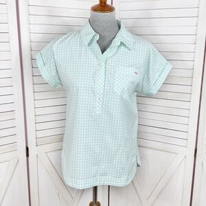 Vineyard Vines Prepster Popover Gingham Check Short Sleeve Shirt Mint Green 6