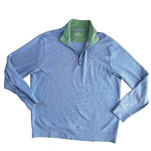 Vineyard Vines Quarter Zip Sweater Mens L Light Blue Logo Contrasting Collar