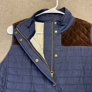 Vineyard Vines Quilted Hunting Vest Womens Small Navy Full Zip Leather Shoulders