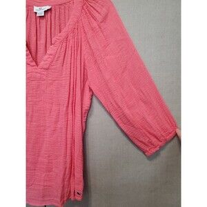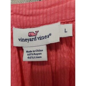 Vineyard Vines Rayon/Linen Textured Pink Split Neck 3/4 Sleeve Blouse Size LGE