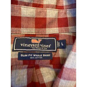Vineyard Vines Red Gray Plaid Button Down Cotton Long Sleeved Shirt Large