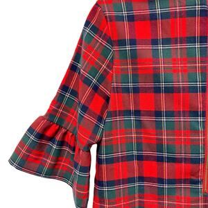 Features: Red, Greenwich Tartan Plaid, Elbow Length Sleeves, Polyester Blend, Zip Back, Split Neck