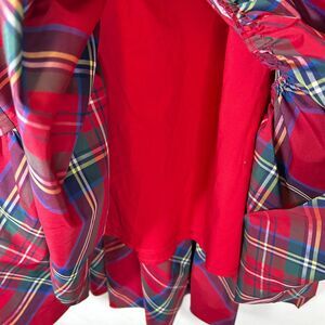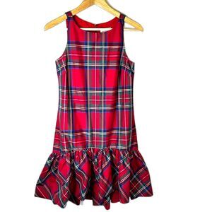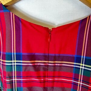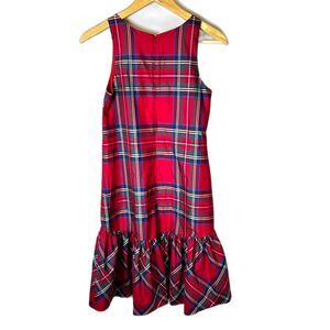 Stylish high low dress with a vibrant red plaid pattern. Sleeveless design. Perfect for casual outings.