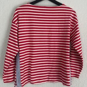 Vineyard Vines Red Stripe Chambray Boatneck Shirt Preppy Nautical Coastal