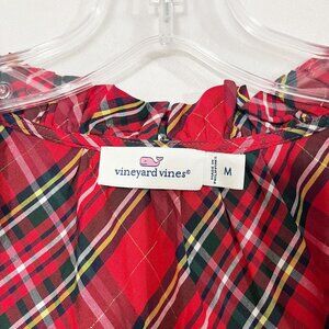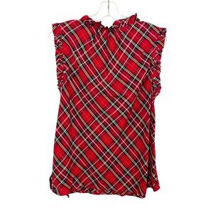Vineyard Vines Red Tartan Plaid Ruffle Trim Short Sleeve Blouse - Size Medium