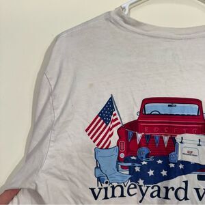Gently worn men's size small vineyard vines graphic printed long sleeve t-shirt. 100% cotton, chest pocket, some faint spots. Patriotic themed, would be great holidays. Please review all photos for any signs of wear-pictured as is. Disclaimer: Any items with any wear/staining has not been treated, and unsure of ability to remove/treat condition. Comes from a smoke free home, bundle with other items to save & minimize shipping cost.