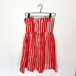 Vineyard Vines Red and White Gingham Fit and Flare Silk Blend Strapless Mini Dre