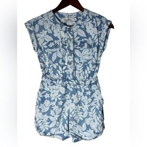 Vineyard Vines Romper Girls M Blue White Floral Chambray Button Elastic Waist