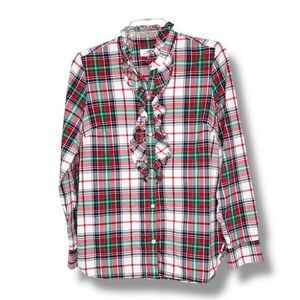 Vineyard Vines Ruffle Neck Holiday Plaid Button Down Blouse Top Women’s Size 6