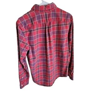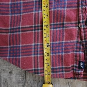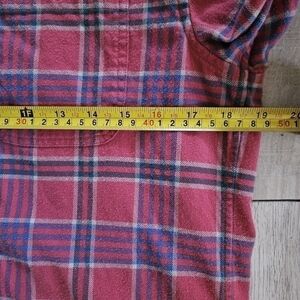 Super soft flannel from vineyard vines! Is a slim fit and although it doesn't have the size tag, it fits Men's small. Please see pics for measurements. Great condition with no flaws! In person, the plaid is more of a pink color than red.