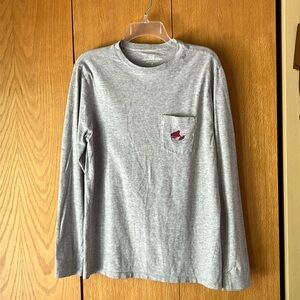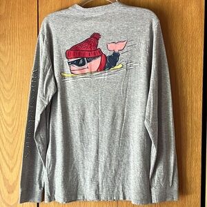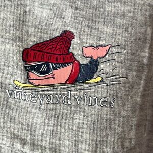 Vineyard Vines SMALL cotton LS Whale pocket tee snowboard winter scene gray EUC