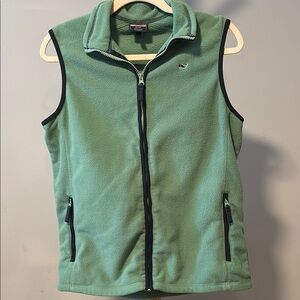 Soft sage fleece vest with full zipper. Includes two zippered pockets.
