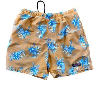 Vineyard Vines Sailboats And Compasses Swim Trunks Orange And Blue Men's Size LG