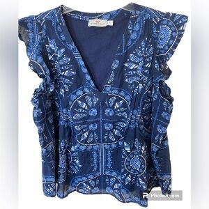 Vineyard Vines Scarf print Pintuck Flutter sleeve top size S, cotton blend