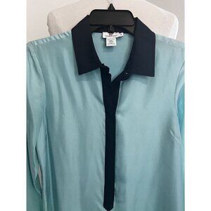 Vineyard Vines Seafoam Silk Shirt Dress Women's Size 4 Roll Tab Sleeve Option
