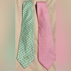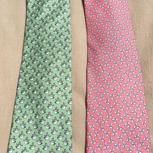 Vineyard Vines Set of 2 Ties Green with Snowmen Holiday Christmas Office Party Pink Ties has Pinwheels Great for Office Work Business Career