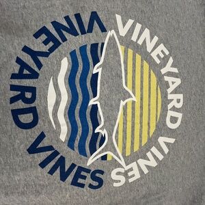 Graphic on chest pocket and back vineyard vines logo on sleeve