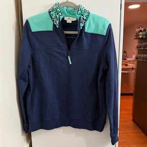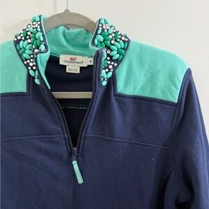 Vineyard Vines Shep Blue Bedazzled Half zip Sweater Sweatshirt Medium