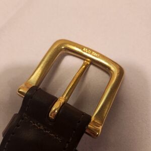 The polished brass buckle adds a touch of classic sophistication, while the rich brown leather accents enhance the overall quality and durability.