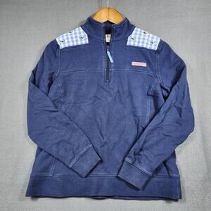 Vineyard Vines Shep Shirt Womens Small 1/4 Zip Pullover Blue Cotton Whale Trim