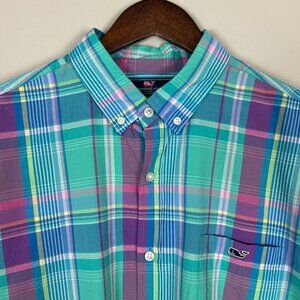Vineyard Vines Shirt Men Large Slim Fit Tucker Button Up Casual Dress Green Blue