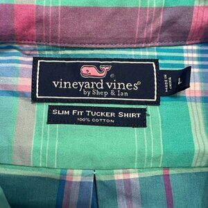 Vineyard Vines Shirt Men Large Slim Fit Tucker Button Up Casual Dress Green Blue L