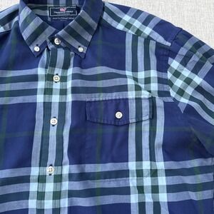 Vineyard Vines Shirt Men's Large Performance Slim Fit Crosby Blue Green Plaid