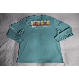 Pre-Owned Vineyard Vines Shirt Mens M Green Spell Out Logo Flight Deck Beer Graphic Cotton exhibit minor flaws like stains.