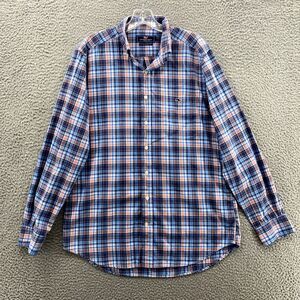 Vineyard Vines Shirt Men's Medium Blue Plaid Slim Fit Tucker Whale Button Preppy