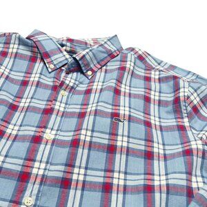 Vineyard Vines Shirt Mens Size XXL Red White Blue Plaid Whale Shirt Button Front