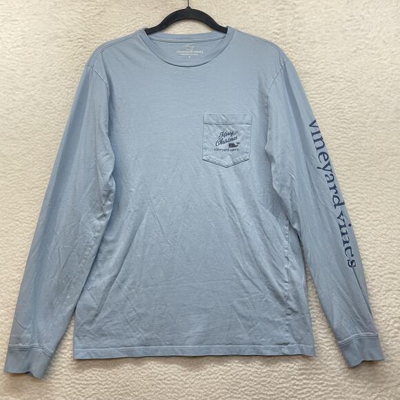 Vineyard Vines Shirt Mens Small Blue Long Sleeve Pocket Merry Christmas Whale