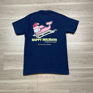 Vineyard Vines Shirt Mens Small Blue Happy Holidays Christmas Graphic