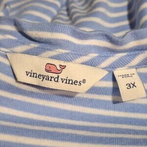 This t-shirt from Vineyard Vines is in excellent preowned condition and has barely been worn - no flaws. Sky Blue and White Stripe Pattern. V-Neck, Short Sleeve. 60% Pima Cotton and 40% Modal. Very Comfy! I just have too many tees and I never wear it. Size 3X.