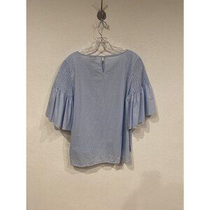 Vineyard Vines Shirt Womens Medium Blue Stripe Flutter Sleeve Made In Italy