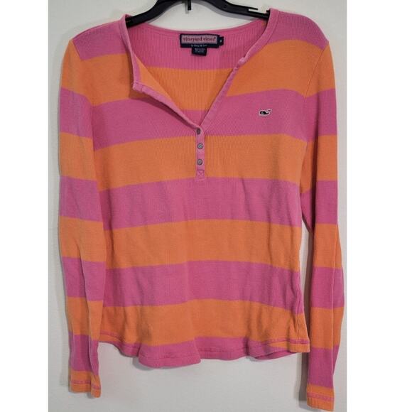 Vineyard Vines Shirt Womens Medium Thermal Pink/Orange Long Sleeve Top Preppy