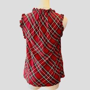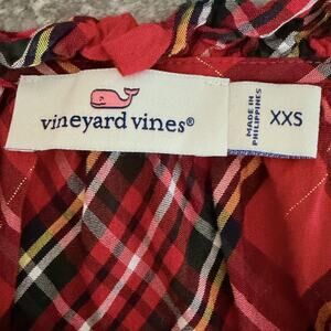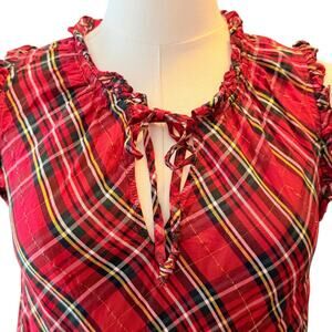 Vineyard Vines Shirt Womens XXS Red Christmas Plaid Ruffle Neck Sleeveless Prep