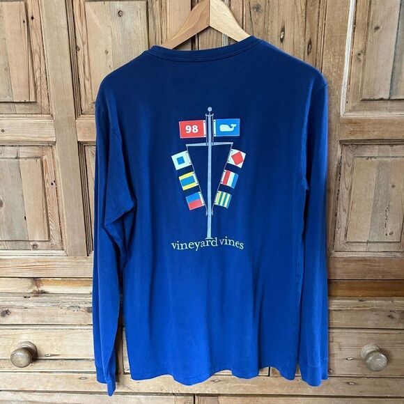Vineyard Vines Shirt XS Navy Flags Men’s Long Sleeve Collar Prep Nautical - Flaw