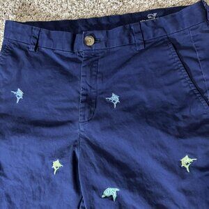 Vineyard Vines Shorts Boys 18 Navy Embroidered Swordfish Critter Chino Stretch