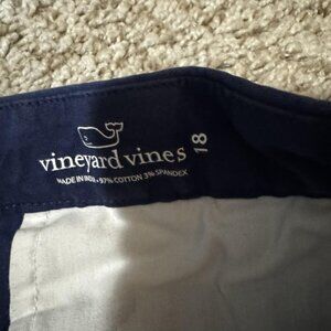 Branding: Interior waistband print "vineyard vines"; woven back pocket label "vineyard vines by Shep & Ian"
