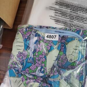 Color: Multicolor with blue background and allover fish and coral reef print.