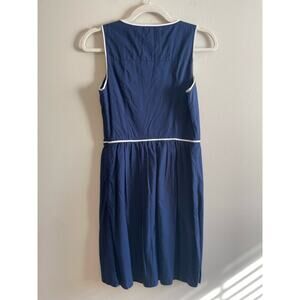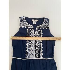 Vineyard Vines Size 2 Navy Blue Dress White Embroidered 100% Cotton Sleeveless