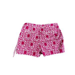 floral wrap shorts, pink floral shorts, cotton blend shorts, size 12 shorts, tie waist shorts, casual wrap shorts, elastic waist shorts, Vineyard Vines shorts, women's summer shorts, pink and white shorts, printed summer shorts, machine washable shorts, comfortable floral shorts