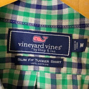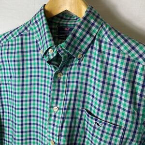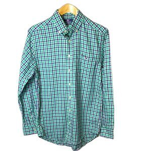 Vineyard Vines Slim Fit Tucker Green Navy White Check LS Button-Down Shirt Sz M