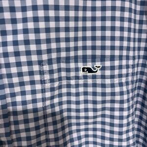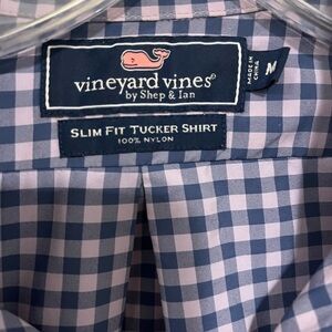 Vineyard Vines Slim Fit Tucker Shirt Gingham Navy/Lavender Size Medium Nylon. the print is lavender and navy blue not white and navy blue as it is showing up in the picture.