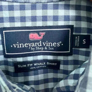 Vineyard Vines Slim Fit Whale Shirt Blue Check Size Small