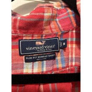Vineyard Vines Slim Fit Whale Shirt Men's Medium Pink Linen Plaid Murray Style