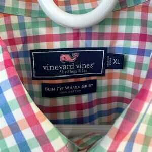 Vineyard Vines Slim Fit Whale Shirt Mens XL Blue Green Pastel Gingham Preppy