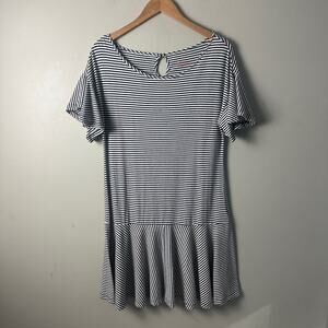 Vineyard Vines Stripe Flutter Sleeve Flounce Dress Navy Blue White Nautical XS Extra Small